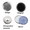 Magnet ou badge personnalisé avec un de nos modèle ou un que vous nous expliquez