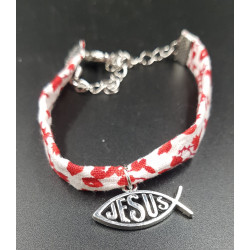 Petit bracelet fantaisie fleuri, avec breloque "Jésus dans poisson "